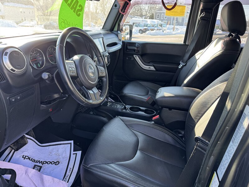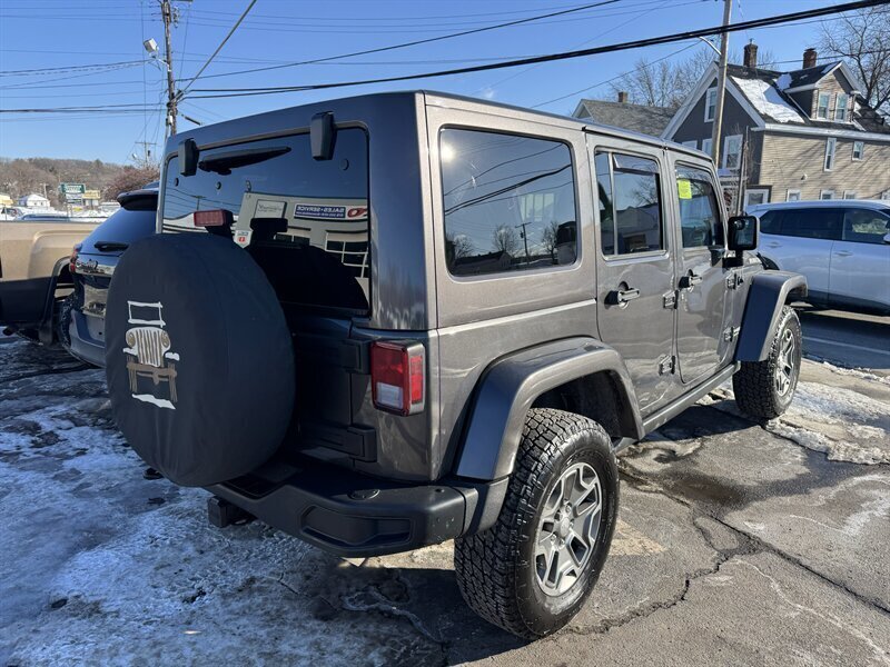 Practically unstoppable, our 2018 Jeep Wrangler Unlimited Rubicon 4X4 in Granite Crystal Metallic is an excellent choice for extreme adventures! Powered by a robust 3.6 Liter V6 offering 285hp paired to a 5 Speed Automatic transmission so you can explore with fearless confidence. You’ll also appreciate rugged hardware like Dana axles and a Rock-Trac transfer case when the going gets rough, and this Four Wheel Drive SUV even looks ready for action with an iconic grille, fog lamps, and exclusive Rubicon alloy wheels while showing off nearly 21mpg on the highway. You can take off the top, remove the doors, and fold down the windshield for amazing open-air thrills. Our Rubicon cabin blends modern design with classic Jeep styling and plenty of space for five people and their gear. Supportive leather seats, a leather-wrapped steering wheel, and dual-zone automatic climate control keep you comfortable even on rough terrain. Stay in touch with Uconnect® 3 technology backed by a 5-inch touchscreen, Bluetooth®, and an eight-speaker audio system with an overhead soundbar. Whether blazing trails or bringing the kids to school, Jeep protects you with a backup camera, stability/traction control, front airbags, and hill-start assist to help keep you out of harm’s way. It’s time to reward yourself with our tremendously capable Wrangler Unlimited Rubicon! Save this Page and Call for Availability. We Know You Will Enjoy Your Test Drive Towards Ownership!