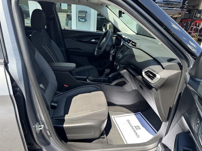 Our sporty 2021 Chevrolet Trailblazer LS presented in Satin Steel Metallic is ready for action! Powered by a TurboCharged 1.2 Liter 3 Cylinder that delivers 137hp to a CVT for confident passing. Our Front Wheel Drive SUV is also fun to drive whether you’re in town or off the map, and it returns nearly 31mpg on the highway. You can blaze trails in style, too, since this fantastic SUV boasts signature LED lighting, 17-inch painted alloy wheels, bold black mirror caps, and an athletic stance. It’s easy to turn heads with that setup! Our LS cabin rewards active owners with comfortable cloth seats, a fold-flat front passenger seat, a versatile second row, air conditioning, and convenient technology with advanced connectivity. Highlights include a 7-inch touchscreen, voice recognition, wireless Apple CarPlay®/Android Auto®, Bluetooth®, WiFi compatibility, and a six-speaker audio system. The roomy rear cargo space is ready for easy loading, too! Safety for you and your passengers is imperative, so Chevrolet protects you with forward-collision alert, lane-keeping assistance, automatic emergency braking, a rearview camera, a rear-seat reminder, StabiliTrak stability/traction control, hill start assistance, and more. Get out there and go in our terrific Trailblazer LS starting today! Save this Page and Call for Availability. We Know You Will Enjoy Your Test Drive Towards Ownership!